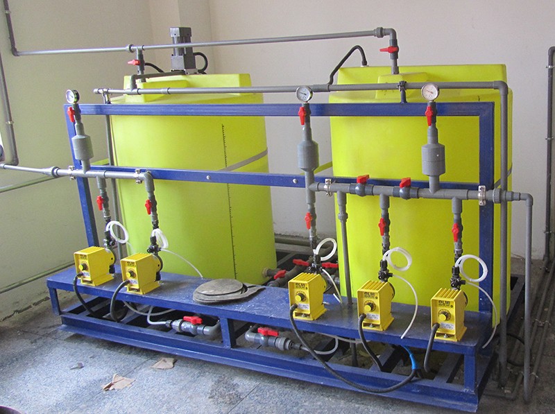 加藥裝置通過不同的工藝設(shè)計(jì),準(zhǔn)確配置各類固體和液體的化學(xué)藥品的溶液,再用計(jì)量泵準(zhǔn)確投加,以達(dá)到各種設(shè)計(jì)要求。如除垢、除氧、混凝、加酸、加堿等。加藥過程可手動(dòng)操作,也可通過PC機(jī)、磁翻板液位計(jì)、PH計(jì)、行程控制器、變頻器等各種電器、儀表、使加藥裝置成為機(jī)電一體化產(chǎn)品、實(shí)現(xiàn)自動(dòng)控制。